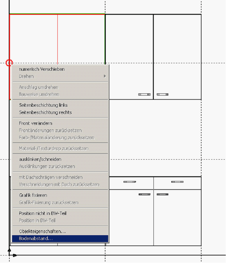 Im Dialog „Bodenabstand“ (Rechtsklick auf ein Element) können Sie auch den Bodenabstand der Oberkante des selektierten Elementes angeben.